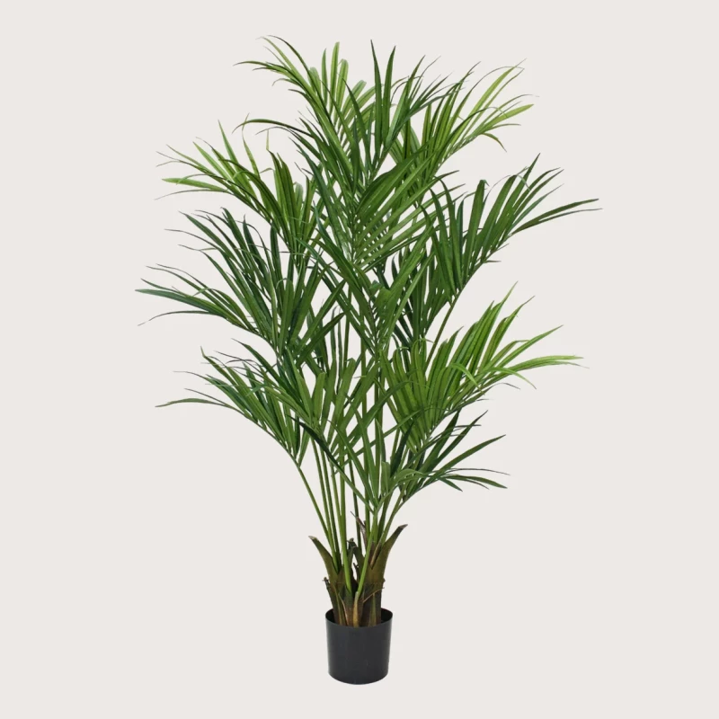 Luxusní umělá Kentia palma Green o výšce 190 cm je dokonalým doplňkem moderních interiérů, které chtějí působit svěže a harmonicky. Její jemně prohnuté listy, štíhlé stonky a přirozený zelený odstín dodávají prostoru lehkost a tropickou eleganci – bez nutnosti jakékoli péče.