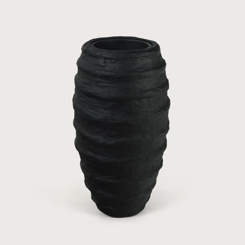 Tento prostorný květináč zaujme svým černým povrchem, který dodává interiéru nebo exteriéru sofistikovaný a nadčasový vzhled. Díky své velikosti je ideální pro větší rostliny nebo menší stromky. Materiál polyresin, ze kterého je květináč vyroben, zajišťuje jeho odolnost vůči povětrnostním vlivům a dlouhou životnost.