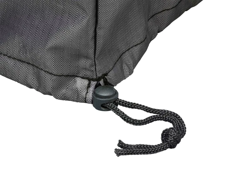 Kryt má integrovanou stahovací šňůru se dvěma zátkami, které umožňují pevné uchycení i při větrném počasí. Snadné nasazení, jednoduchá manipulace a skladný design dělají z krytu praktického pomocníka. Po složení zabírá minimum místa a ukládá se do praktického úložného vaku, který je součástí balení.