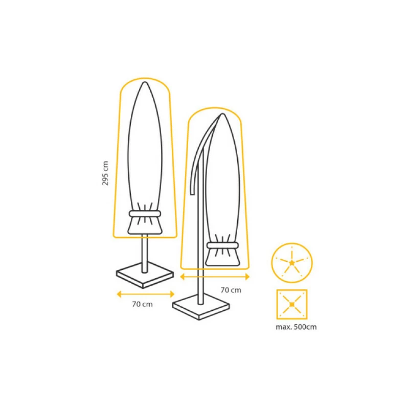Spolehlivá ochrana vašeho zahradního slunečníku po celý rok. Tento kvalitní ochranný kryt je navržen pro velké slunečníky až do rozměru 500 × 500 cm a představuje jednoduchý způsob, jak prodloužit jejich životnost a udržet je v perfektním stavu bez ohledu na počasí.