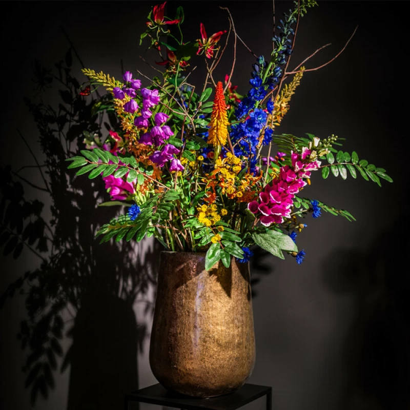 Váza Bep Copper je dostatečně robustní, aby stála jako solitérní dekorace, ale zároveň perfektně doplní i bohaté květinové aranžmá či větve.