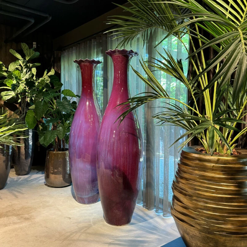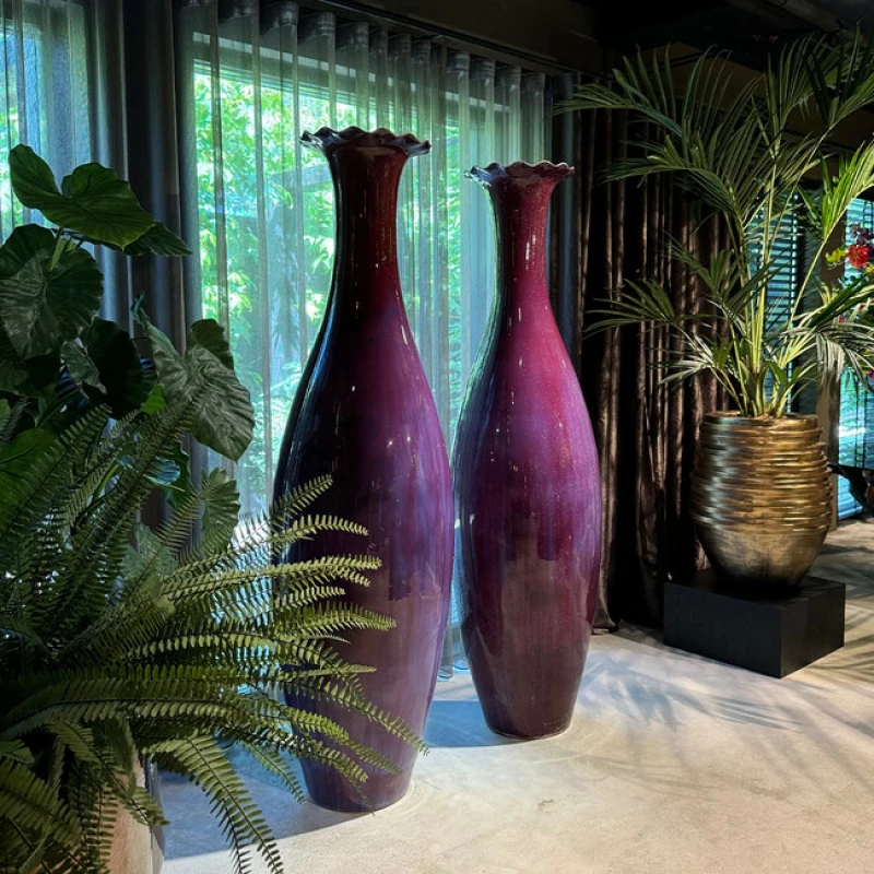 LUXE Vaas Purple H222 je ručně vyráběná limitovaná keramická váza s hlubokou fialovou barvou, jemnou strukturou a elegantním tvarem. Luxusní designový solitér vhodný pro moderní i umělecké interiéry.