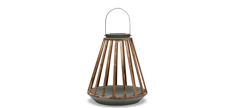 Kate miluje slunce, ale nevadí jí i déšť. Designový zahradní nábytek je vyroben z hliníku a teaku, díky čemuž je solární lampa odolná vůči povětrnostním vlivům. Kate je k dispozici ve třech velikostech - S, M, L.