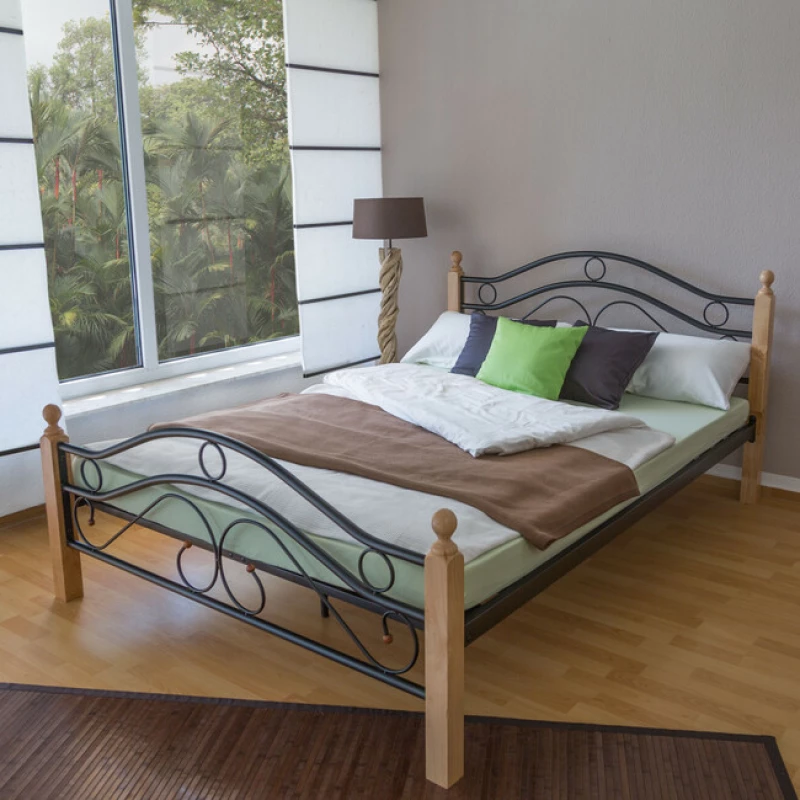 Designová kovová postel MAREA 160×200 v přírodním provedení nabízí pevnou kovovou konstrukci, masivní nohy, kvalitní práškové lakování a stabilní lamelový rošt v ceně. Nadčasový romantický vzhled vytváří útulnou atmosféru ložnice.