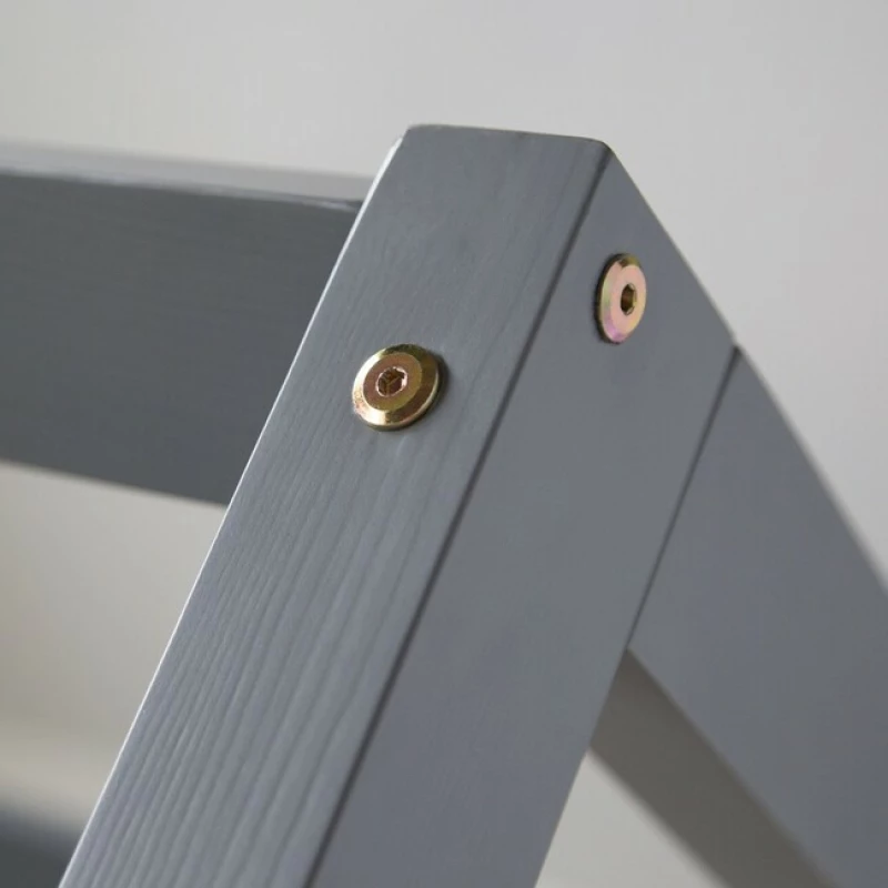Vytvořte vašemu dítěti jeho vlastní kouzelný svět. Dětská postel ve tvaru domečku 90×200 cm v elegantní šedé barvě představuje útulné místo pro spaní i hraní. Díky masivnímu borovicovému dřevu, stabilní bezpečné konstrukci a minimalistickému modernímu designu se stane dominantou každého dětského pokoje.