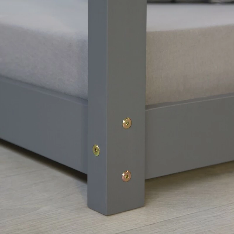 Dětská postel domeček 90×200 v šedém provedení. Masivní borovice, stabilní konstrukce, včetně roštu. Ideální pro spaní i hraní, moderní design, jednoduchá montáž.