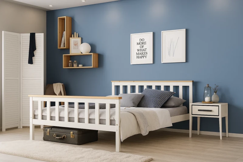 Tato dřevěná postel 140×200 cm z masivní borovice v bílé barvě s hnědým lemem nabízí kombinaci přírodní krásy, pevnosti a elegantního nadčasového vzhledu. Díky jemnému designu a vysokému čelu se hodí do ložnice, pokoje pro hosty i studentského pokoje.