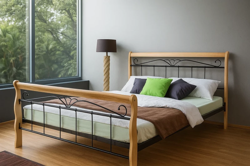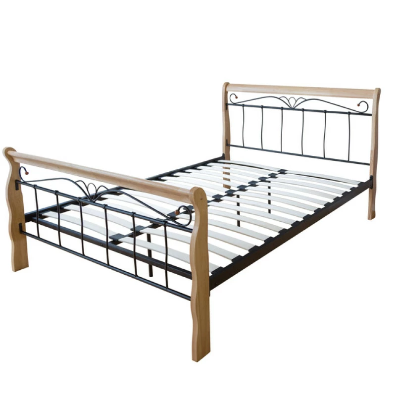 Kovová postel LOREANA 140×200 spojuje klasický vintage vzhled, nadčasovou eleganci a maximální stabilitu. Černý kovový rám s kvalitním práškovým lakem doplňují tmavě hnědé dřevěné sloupky z malajského tvrdého dřeva, které posteli dodávají jedinečný šarm a teplý přírodní akcent.