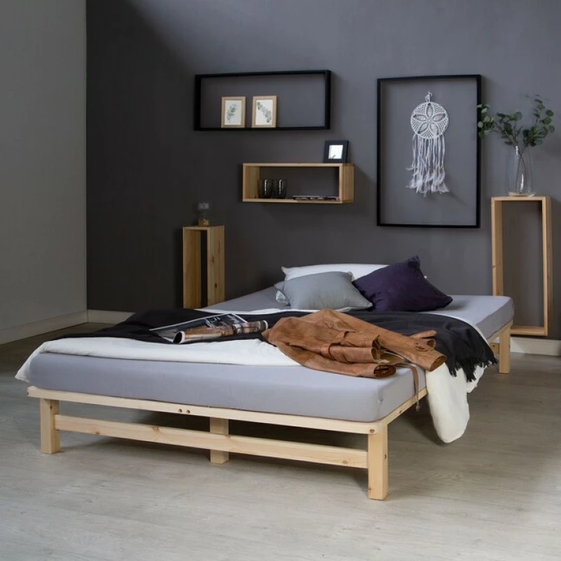 Paletová postel ABREE přináší trendový paletový design a přírodní minimalistickou estetiku do každé ložnice. Inspirovaná stylovým DIY vzhledem palet, tato postel z masivního borovicového dřeva nabízí stabilní konstrukci, nadčasový vzhled a skvělé využití prostoru. Je dostupná ve dvou rozměrech (90×200 a 140×200) a dvou barevných provedeních – přírodní borovice nebo elegantní bílý lak.