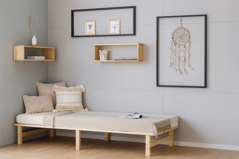 Díky své nízké konstrukci, pevnému rámu a hladce zaobleným hranám se perfektně hodí do moderních interiérů, studentských pokojů, podkroví, malých bytů i pokojů pro mladé. Prostorově úsporný design umožňuje snadné zakomponování do menších místností, zatímco vysoká nosnost a robustní provedení zajišťují dlouhou životnost.