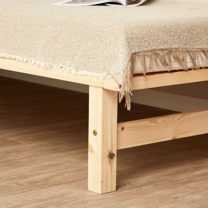Paletová postel ABREE přináší trendový paletový design a přírodní minimalistickou estetiku do každé ložnice. Inspirovaná stylovým DIY vzhledem palet, tato postel z masivního borovicového dřeva nabízí stabilní konstrukci, nadčasový vzhled a skvělé využití prostoru. Je dostupná ve dvou rozměrech (90×200 a 140×200) a dvou barevných provedeních – přírodní borovice nebo elegantní bílý lak.