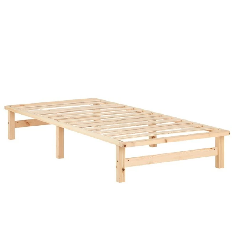 Paletová postel ABREE v rozměrech 90×200 nebo 140×200, v bílé či přírodní barvě. Masivní borovice, minimalistický design, stabilní rám a lamelový rošt v ceně. Ideální do moderních interiérů, malých pokojů a studentských bytů.