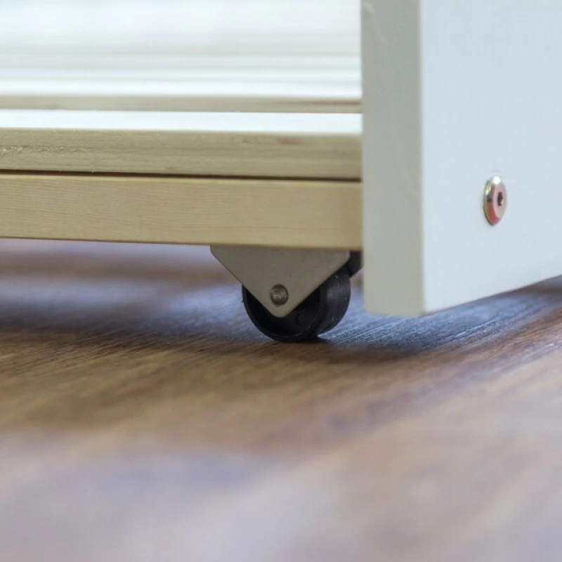 Konstrukce z masivní borovice lakované do elegantní bílé barvy zajišťuje stabilitu, dlouhou životnost a svěží vzhled. Horní i spodní postel jsou vybaveny rolovacími lamelovými rošty, takže není nutné pořizovat další příslušenství. Výsuvná část se snadno pohybuje na hladkých plastových kolečkách a během okamžiku vytvoří druhé lůžko se stejným rozměrem 90×200 cm.