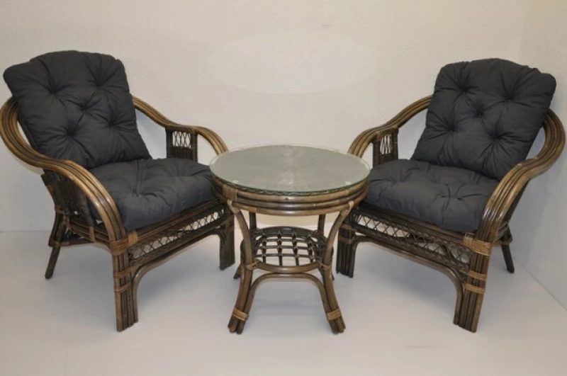 Ratanová sedací souprava Rio De Janeiro 2+1 v hnědé barvě je vyrobena z přírodního ratanu z masivních ratanových tyčí. Trojitá konstrukce na klíčových místech zajišťuje vysokou pevnost, stabilitu a dlouhou životnost. Souprava zahrnuje dvě prostorná křesla, stolek se skleněnou deskou a sadu komfortních polstrů.