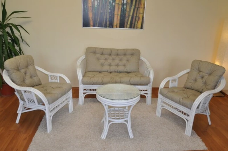Ratanová sedací souprava Rio de Janeiro – bílá | Elegantní přírodní ratan pro interiér a zimní zahrady