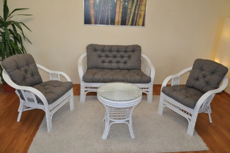 Ratanová sedací souprava Rio de Janeiro bílá - Tmavý šedý melír