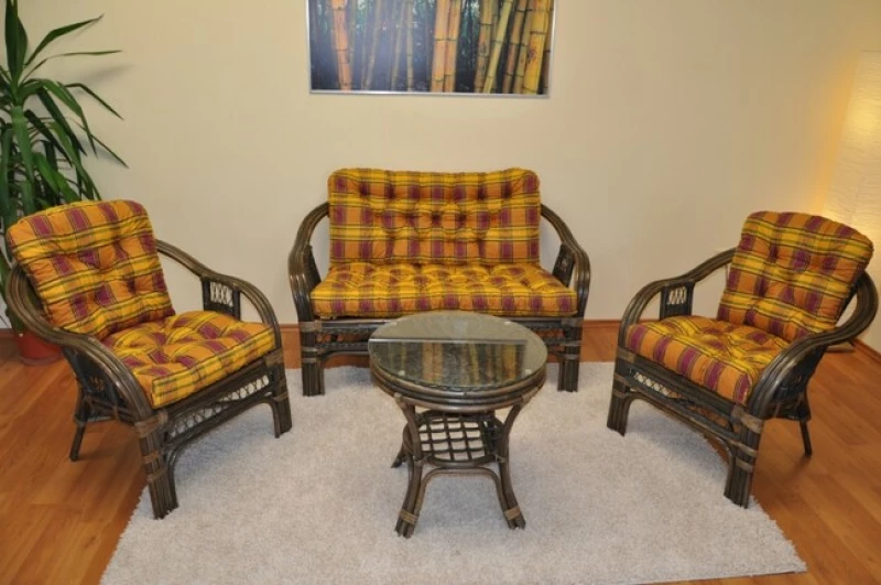 Ratanová sedací souprava Rio de Janeiro patří mezi klasiku z přírodního ratanu, která vyniká vysokou pevností, kvalitním zpracováním a nadčasovým designem. Konstrukce je vyrobena z masivních ratanových tyčí, přičemž hlavní nosné části jsou vedeny v trojitém provedení, což výrazně zvyšuje stabilitu i životnost nábytku.