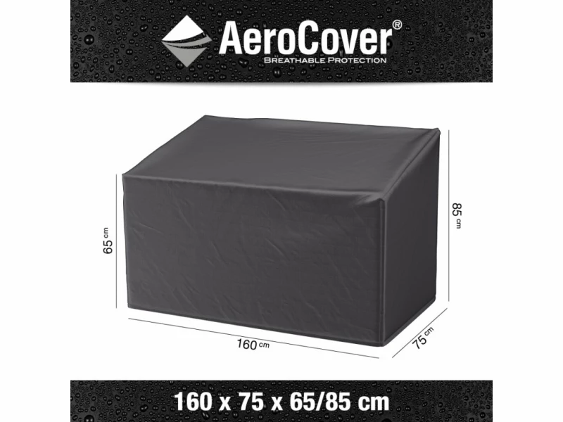 Ochranný obal AeroCover® na zahradní pohovku 160 × 75 × 65/85 cm. Vodotěsný a prodyšný RIPSTOP materiál chrání před deštěm, UV zářením, prachem i plísní. Snadná manipulace, pevné uchycení a úložný vak.