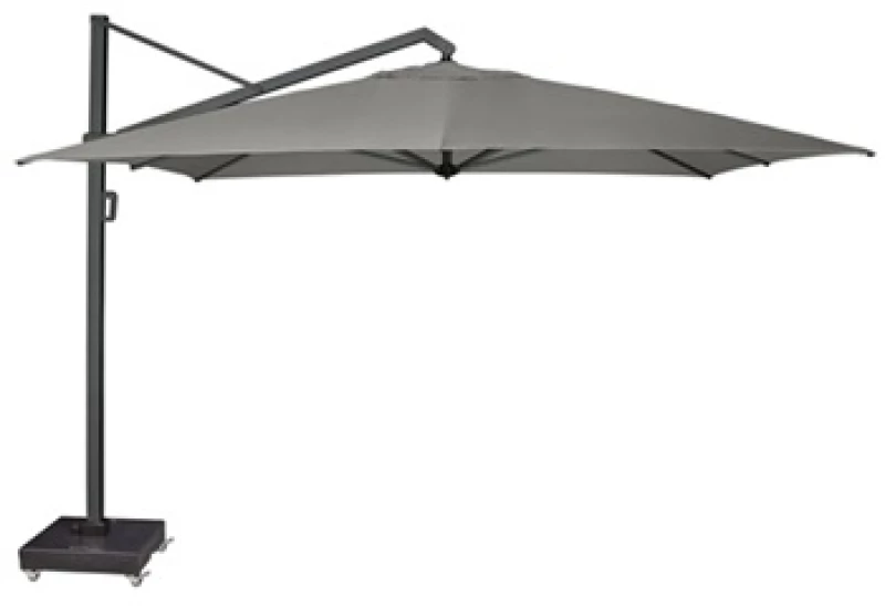 Masivní hliníková konstrukce v kombinaci s kamennou (žulovou) podstavou o hmotnosti 120 kg nebo 150 kg zajišťuje výjimečnou stabilitu i při náročnějších povětrnostních podmínkách. Rameno slunečníku je vybaveno speciálními napínacími pružinami, které zvyšují odolnost vůči větru a udržují látku dokonale napnutou.