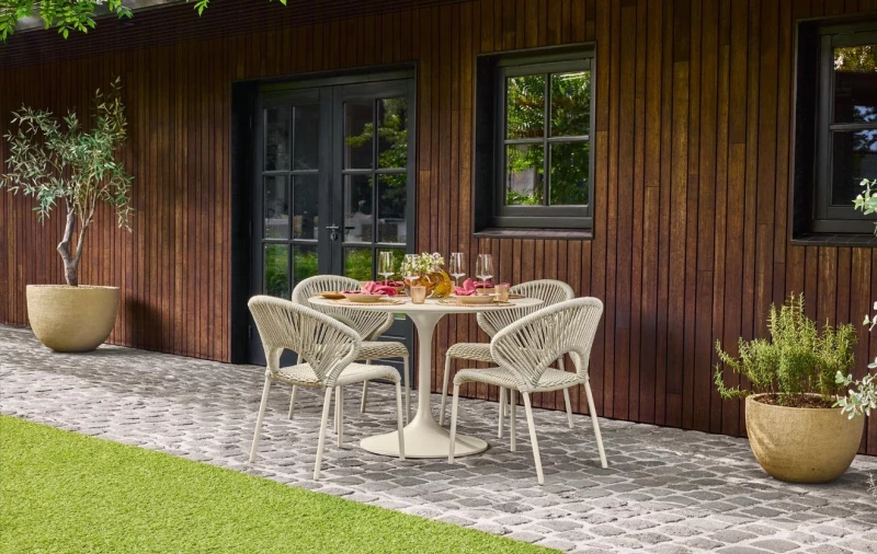 Průměr 90 cm poskytuje pohodlný prostor pro 2–4 osoby, což činí stůl Nova ideálním řešením pro menší terasy, balkony nebo zahradní kouty. V kombinaci s židlemi SUNS vytvoříte elegantní a funkční venkovní jídelní set, který se stane přirozeným centrem vašeho venkovního prostoru.