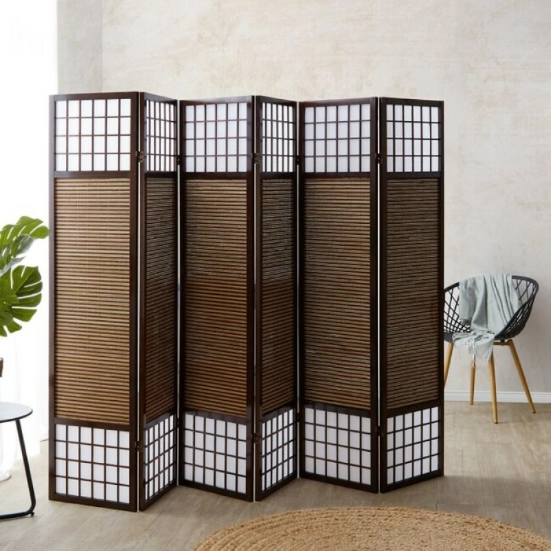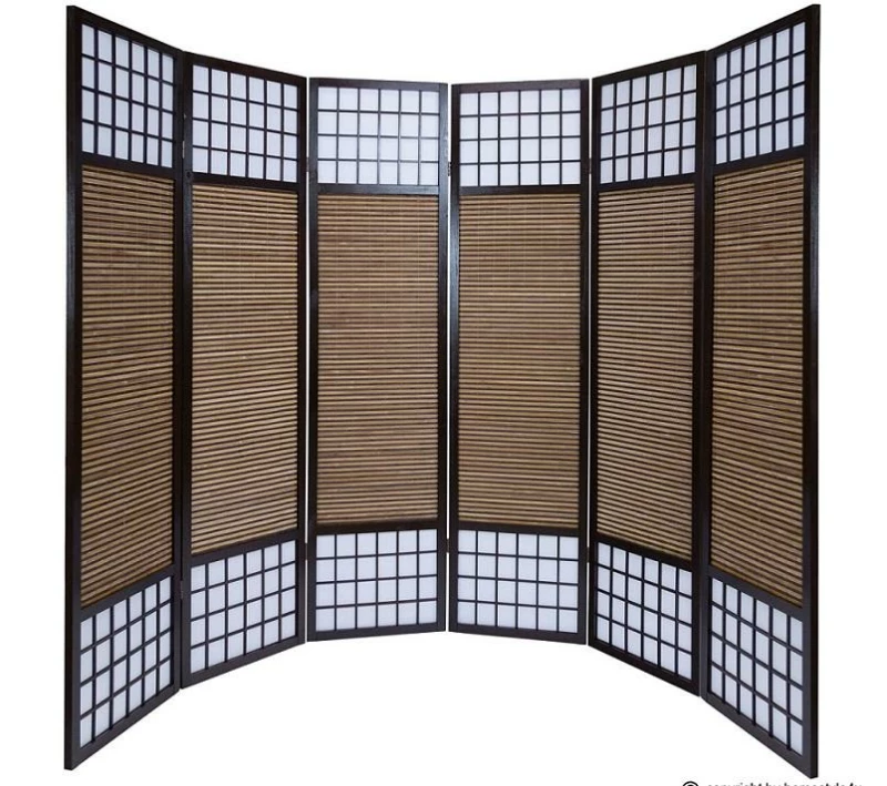 Šestidílný bambusový paraván – tmavě hnědý rám s rýžovým papírem