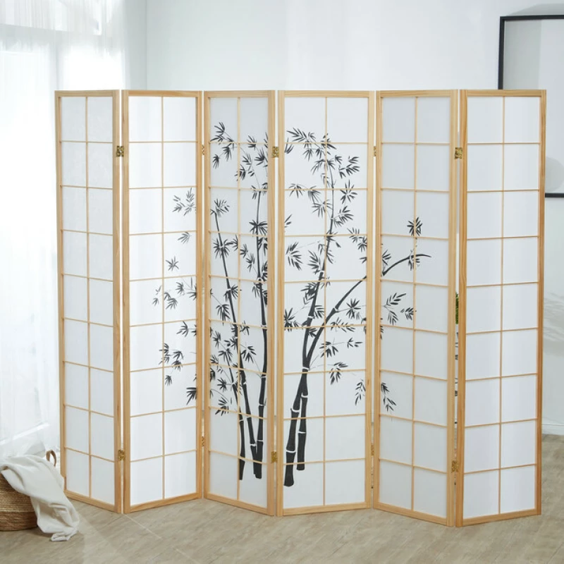 Japonský paraván HS 394 – přírodní dřevo & bambusový motiv