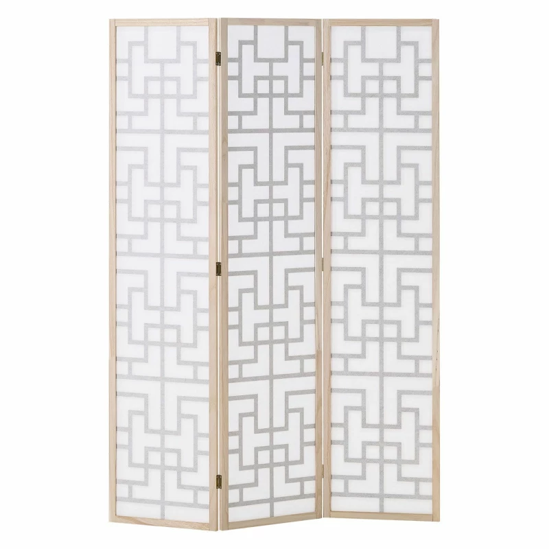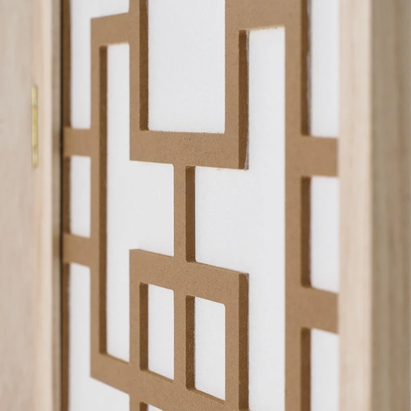 - dřevěný rám s geometrickým vzorem na průsvitné látce shoji/rýžový papír/
