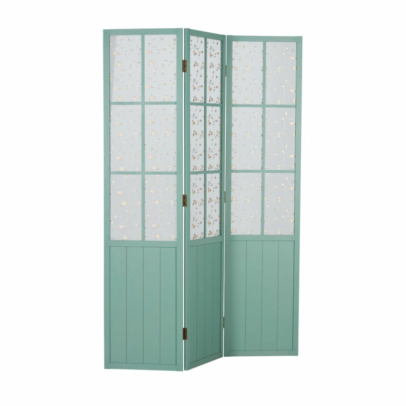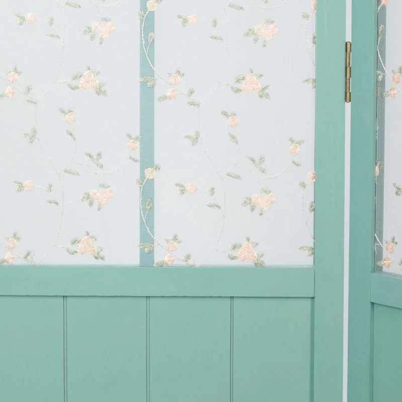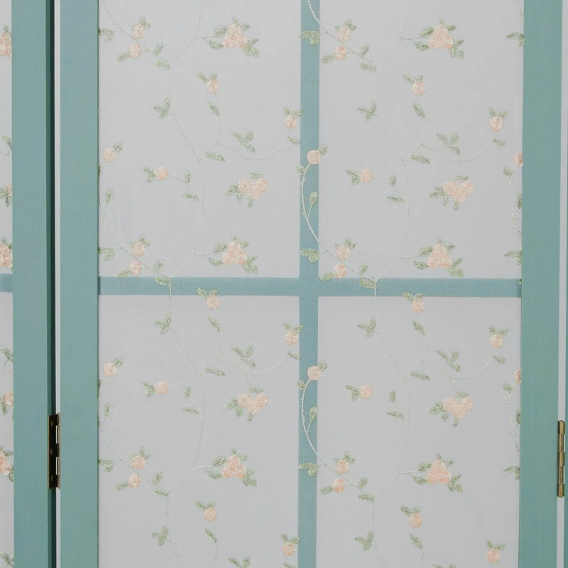 Tato stylová dělící stěna je ideální pro dodání rustikálního nádechu místnosti. Horní část panelů je potažena látkou s vyšívanými květy. Pastelový odstín spolu s jemnými květinami dodávají dělící stěně vzhled venkovského stylu.