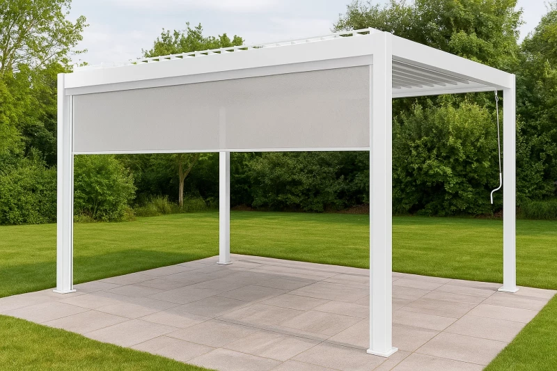 Stínící roletu ROTA v bílé barvě lze dokonale kombinovat s dalšími doplňky pergoly, jako jsou LED osvětlení, topné panely nebo zahradní nábytek. Vytvoříte si tak kompletní a funkční venkovní obývací prostor, který můžete využívat po celý rok.