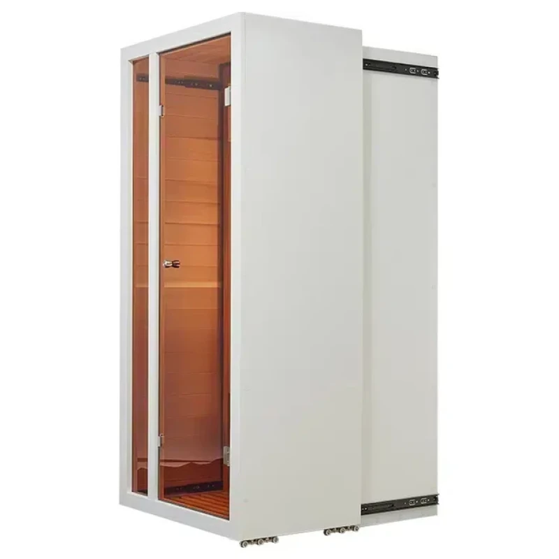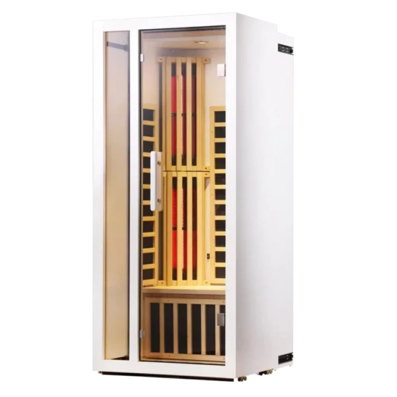 Objevte chytré řešení domácího wellness v kompaktních rozměrech. Hemlock Magnus 1 je výsuvná infrasauna pro 1 osobu, která šetří místo a zároveň nabízí plnohodnotné prohřátí díky kombinaci Full Spectrum a carbon zářičů. Prémiové hemlock dřevo (FSC), čistý design a bohatá výbava dělají z tohoto modelu ideální volbu do bytů i menších domů.