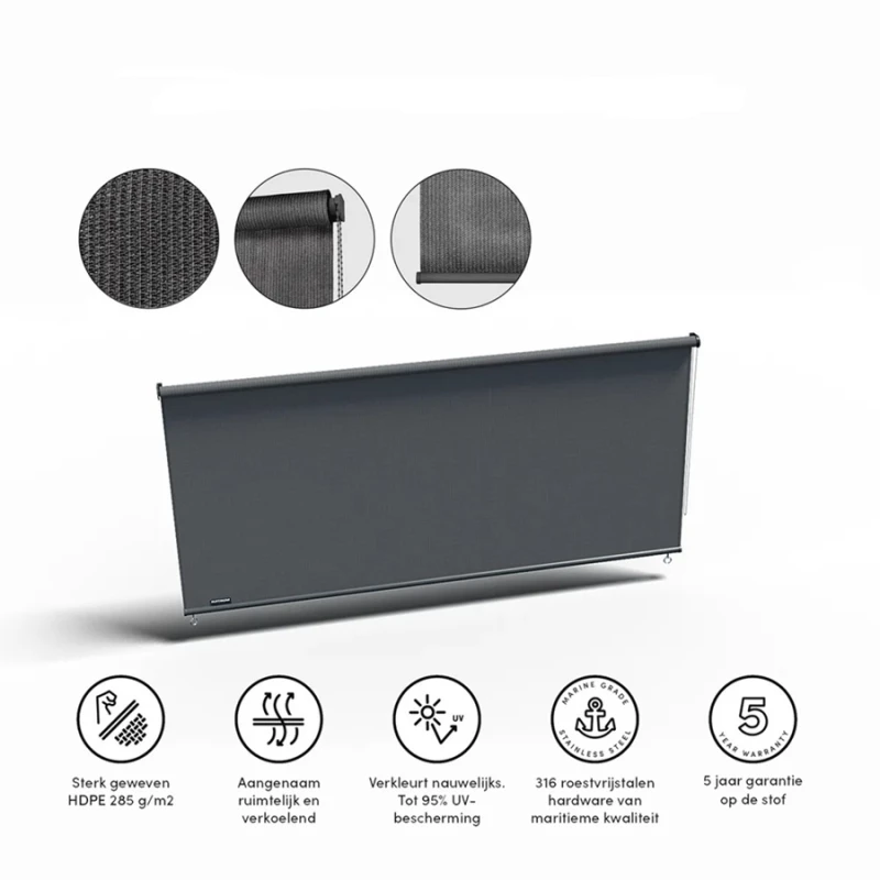 Coolfit venkovní roleta – venkovní roleta z HDPE 285 g/m², prodyšná, větruodolná, s UV ochranou 95 %. Vhodná na okna, balkony i pergoly. Snadná montáž, dlouhá životnost a 5letá záruka na tkaninu.
