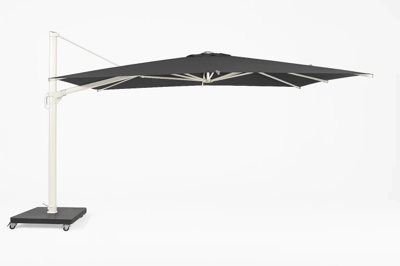 Slunečník se dodává bez podstavy, doporučená je 170kg základna s kolečky pro snadné přesouvání.