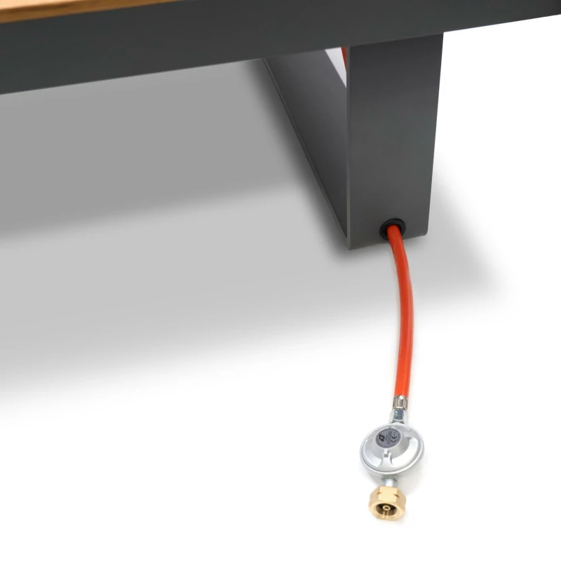 Plynový hořák vytváří čistý, atmosférický plamen, který je vylepšen přírodními lávovými kameny pro autentický efekt ohně. Plynová nádrž je umístěna vně stolu a lze ji uložit do elegantního krytu z naší nabídky, aby byla sestava úhledná a soudržná.