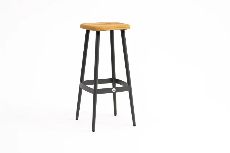 Barová židle SUNS Virenze kombinuje odolný hliník a přírodní teak v elegantním designu. Ideální pro moderní terasy a venkovní bary. Odolná, stylová a vhodná pro celoroční použití.