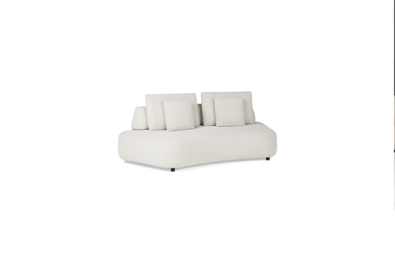 Luxusní dvoumístná pohovka zakřivená SUNS Blocchi (224×134×89 cm) s organickým designem a objemným polstrováním. Španělská venkovní látka odolná proti UV, vodě a plísním. Polyuretanová pěna pro maximální komfort. Celoroční použití, snadná údržba.