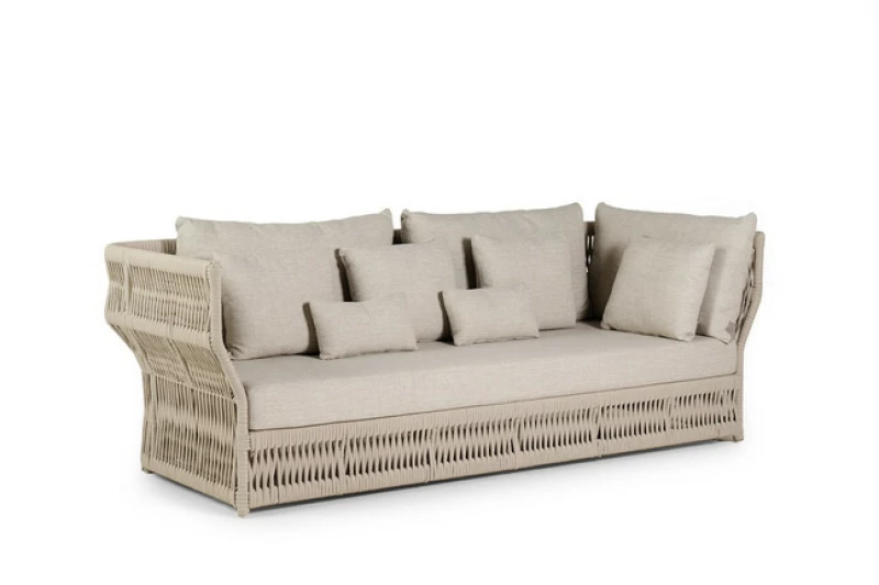Zahradní lounge pohovka Hacienda 3místná Creme White je perfektní volba pro ty, kdo chtějí spojit funkčnost, odolnost a luxusní vzhled v jednom kusu zahradního nábytku. Minimalistický design s nadčasovou elegancí vytvoří stylový prvek vašeho venkovního prostoru.