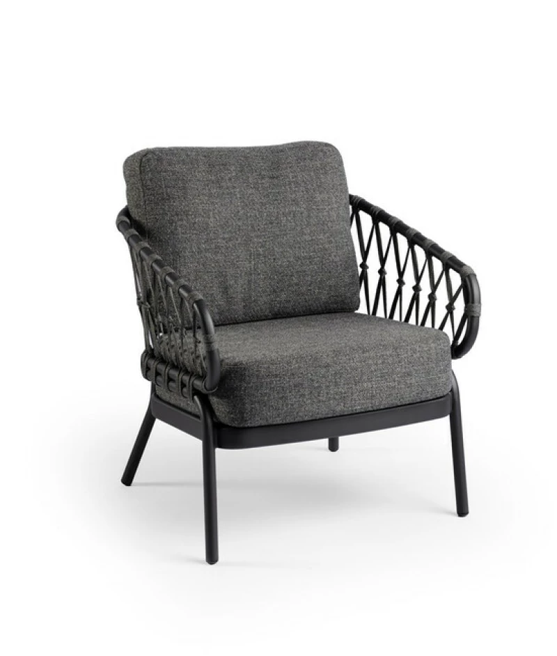Nízká jídelní křesla Natal navazují na design stolu – jejich hliníková konstrukce je doplněna olefinovým lanem a polštáři z prémiové tkaniny Swiss Fabric, které zaručují maximální pohodlí a dlouhou životnost.
