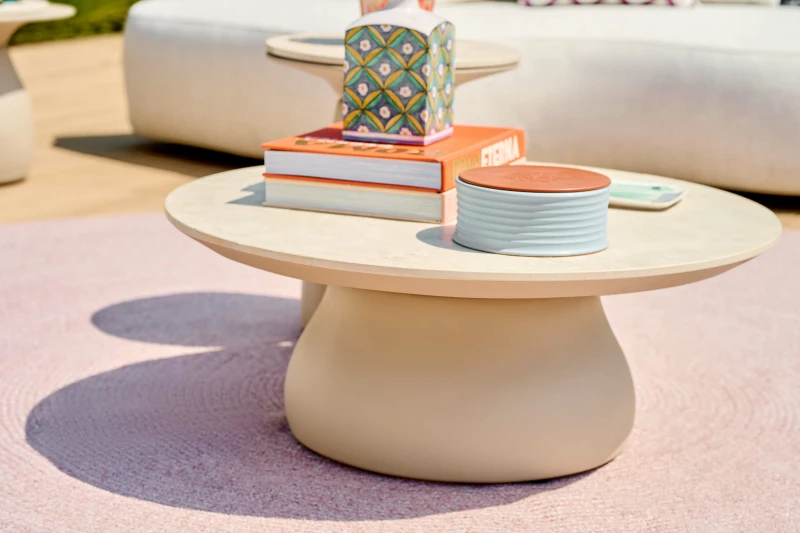 Volitelná deska z materiálu Neolith® Rapolano posouvá tento zahradní konferenční stolek na novou úroveň. Slinutý kámen nabízí výjimečnou odolnost proti poškrábání, UV záření i teplotním změnám. Navíc je zcela nenáročný na údržbu, což z něj činí ideální volbu pro venkovní použití.