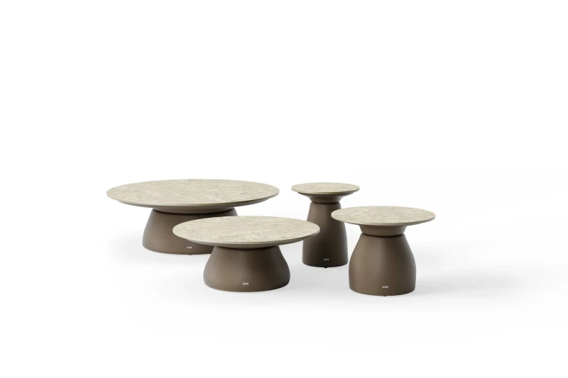 Volitelná deska z materiálu Neolith® Rapolano posouvá tento zahradní konferenční stolek na novou úroveň. Slinutý kámen nabízí výjimečnou odolnost proti poškrábání, UV záření i teplotním změnám. Navíc je zcela nenáročný na údržbu, což z něj činí ideální volbu pro venkovní použití.