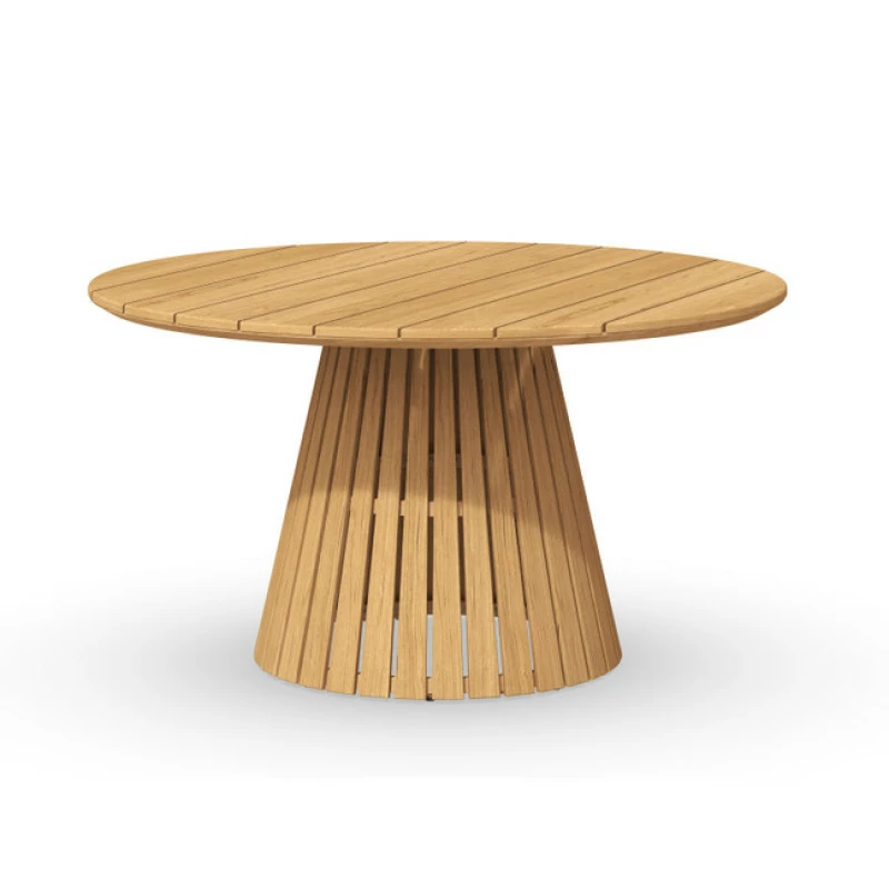 Nízký teakový stůl MARINGA z masivního dřeva s certifikací FLEGT. Nadčasový kulatý design 120 × 120 × 68 cm, přírodní krása, dlouhá životnost a udržitelný původ. Stylový středobod vašeho domova.