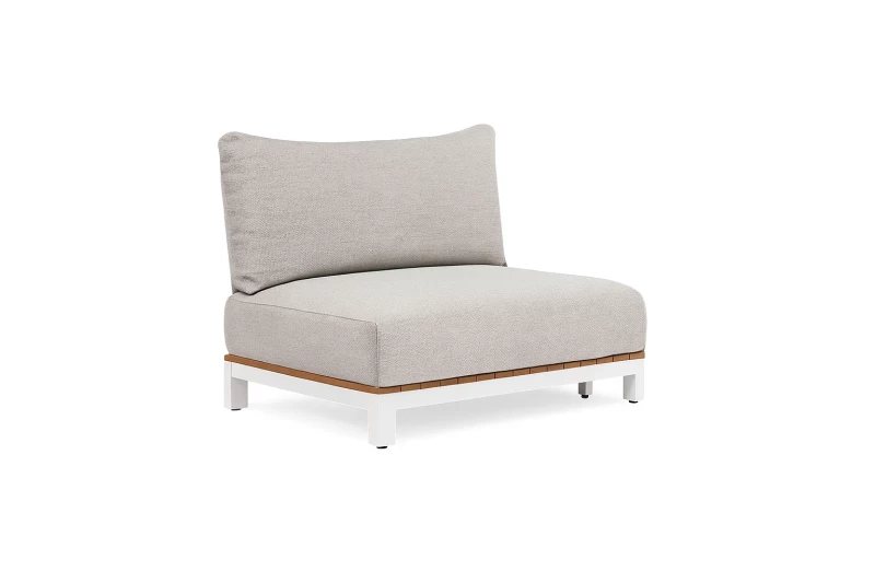 Středový díl SUNS Evora v bílé barvě je dokonalým doplňkem modulární sestavy zahradního nábytku, který přináší další komfortní místo k sezení a zvyšuje flexibilitu vašeho venkovního prostoru.