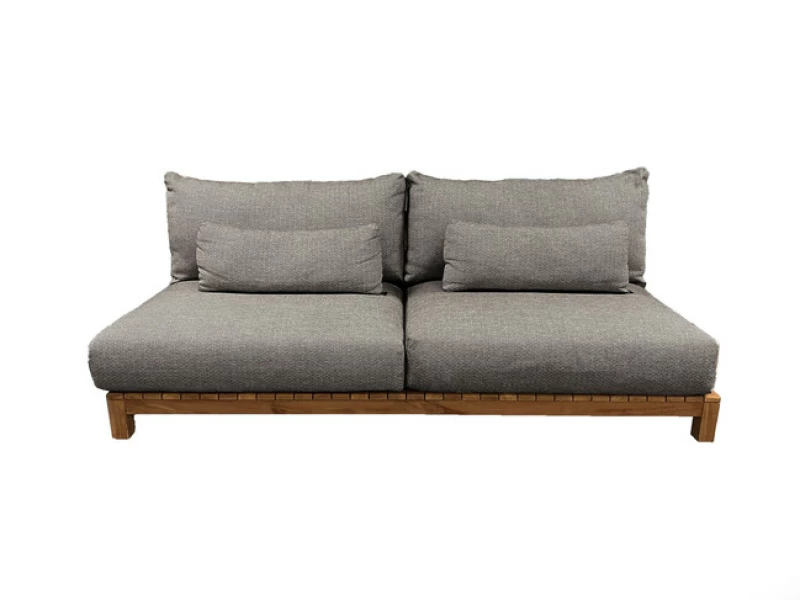 Luxusní 2-místná zahradní pohovka SUNS Portofino (214×107×86 cm) s teakovou základnou a hliníkovými opěradly. Fast Dry Foam polštáře s prémiovou látkou Sunproof®. Inovativní fixace polštářů, modulární systém. Dostupná v Soft Pink a Soft Grey.