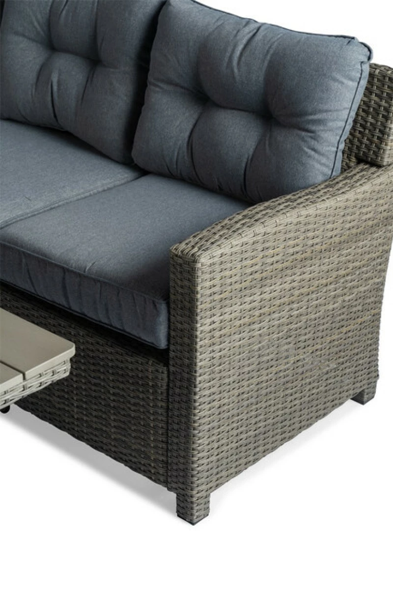 Pevná konstrukce z odolného umělého ratanu v kombinaci s komfortními polštáři zajišťuje dlouhou životnost a příjemné pohodlí při každodenním používání.