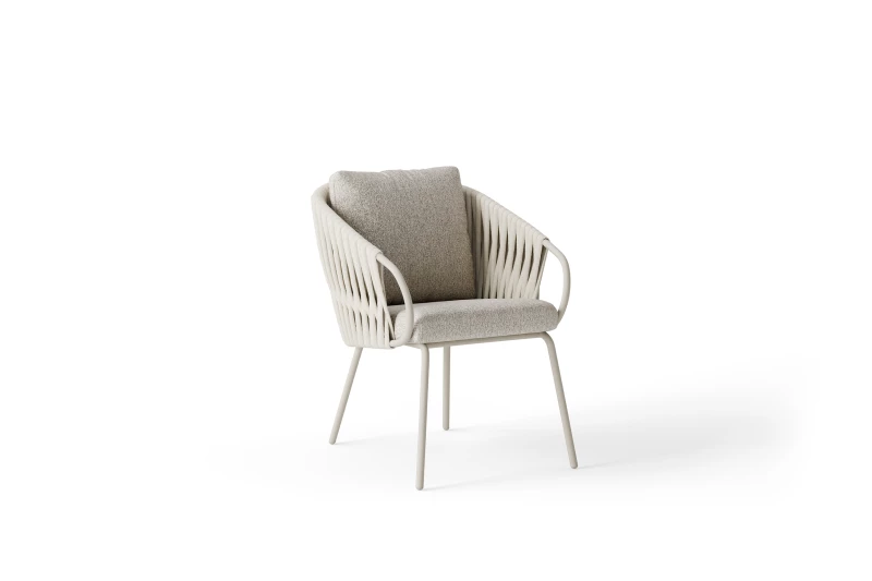 Rám židle je vyroben z nerezové oceli s vysoce kvalitní práškovou povrchovou úpravou, která zajišťuje dlouhou životnost a atraktivní vzhled. Sedák je tvořen prémiovým akrylovým lanem, které je odolné vůči povětrnostním vlivům, UV záření a zachovává si svůj tvar i barvu po mnoho let.