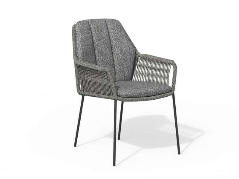 Zahradní židle Gloria s antracitovým rámem, šedým výpletem a popelově šedým polštářem. Elegantní, pohodlná a odolná pro moderní terasy a venkovní stolování.