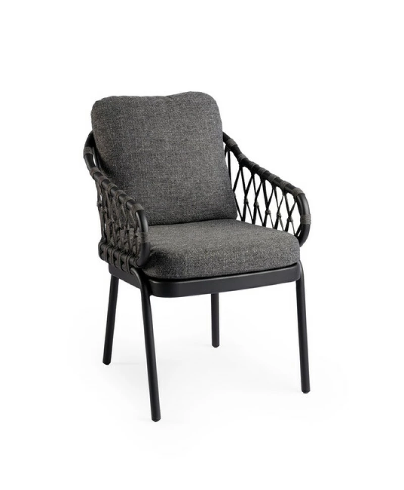 Židle Natal zaujme svým moderním vzhledem s jemným lanovým výpletem a vzdušnou otevřenou konstrukcí.