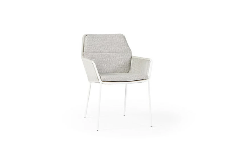 Zahradní židle SUNS Punta s nerezovou konstrukcí a lanovým výpletem. Polštáře Quick Dry Foam® a potahy Sunproof® zajišťují luxusní komfort i celoroční odolnost.