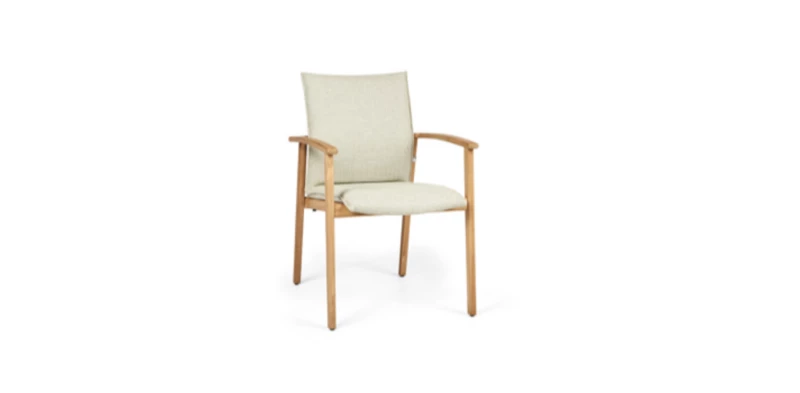 Díky svému vysokému a širokému opěradlu poskytuje židle optimální podporu zad, zatímco měkce polstrovaný sedákzajišťuje pohodlí i při delším sezení. Židle se skvěle kombinuje s teakovými jídelními stoly SUNS a snadno tak vytvoříte harmonický a vkusný zahradní set.