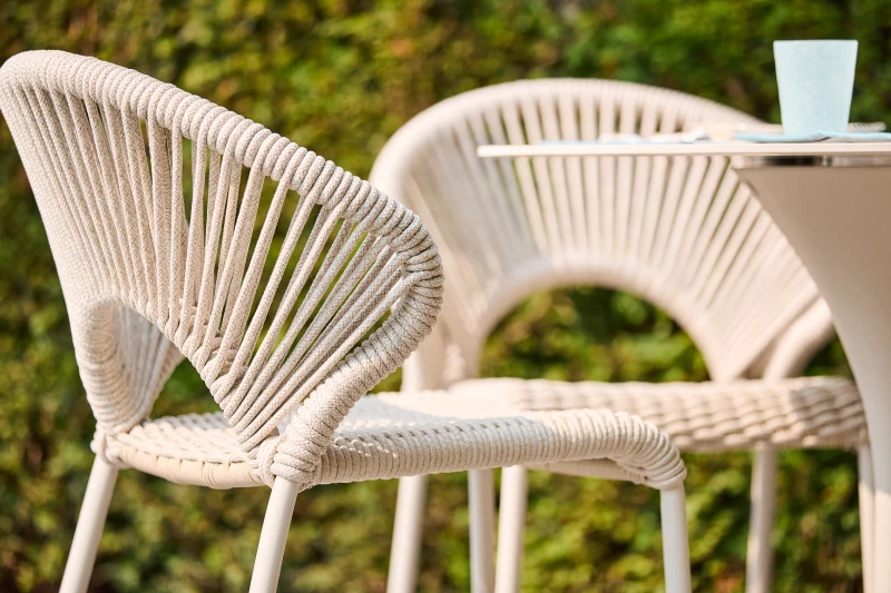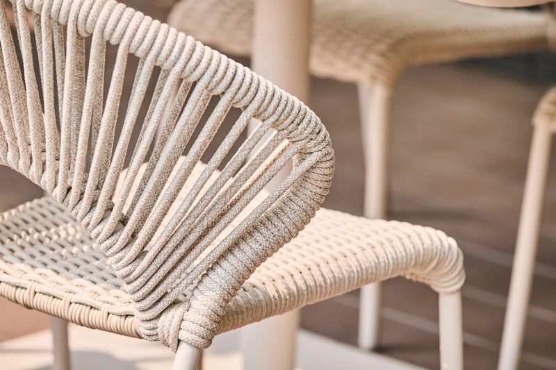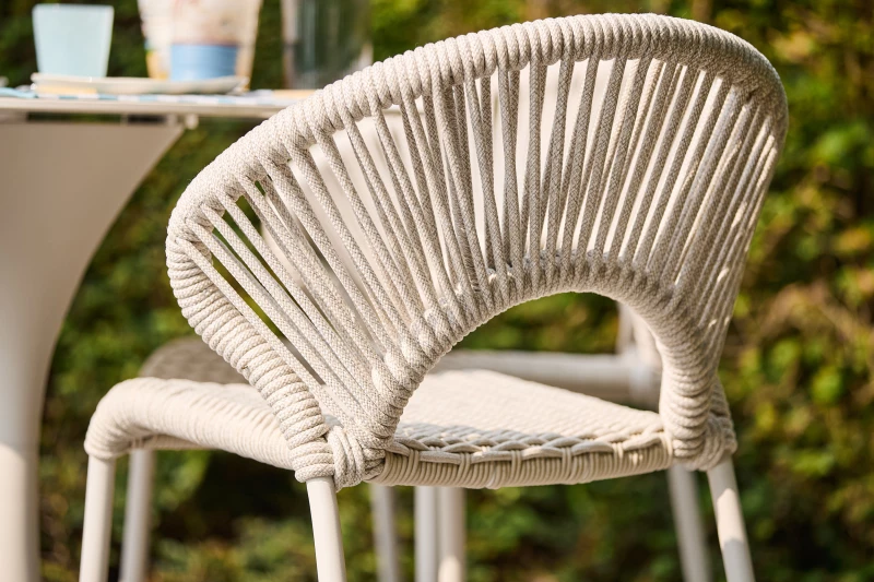 Konstrukce židle je vyrobena z pevného hliníku s práškovou povrchovou úpravou, která zajišťuje dlouhou životnost a odolnost vůči povětrnostním vlivům. Sedák tvoří prémiové akrylové lano, známé svou pružností, pevností a odolností proti UV záření.