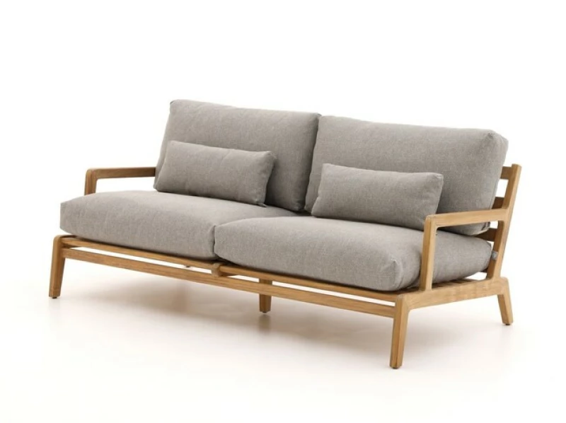 Konstrukce pohovky je vyrobena z certifikovaného teaku – dřeva, které je mimořádně pevné, trvanlivé a odolné vůči povětrnostním vlivům. Teak se vyznačuje dlouhou životností a přirozeným vzhledem, který se časem proměňuje do teplého šedého odstínu, což dodává nábytku osobitý charakter.